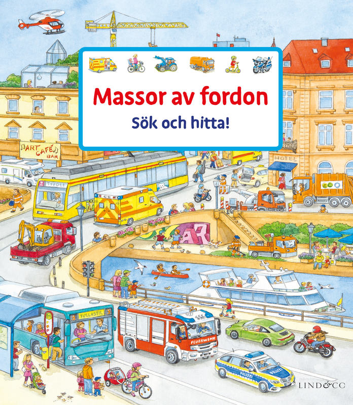 Varje uppslag är fullt av olika fordon och annat spännande att upptäcka.