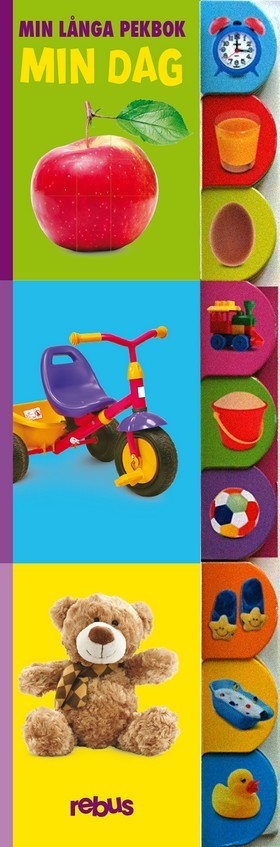 Min långa pekbok - min dag är en söt pekbok med fotografiska bilder i nytt spännande format! Tre små pekböcker på höjden gör det spännande att bläddra och titta på de fina bilderna. Ett bild på varje sida gör det enkelt och tydligt för den lilla att titta på alla saker man kan se en vanlig dag.