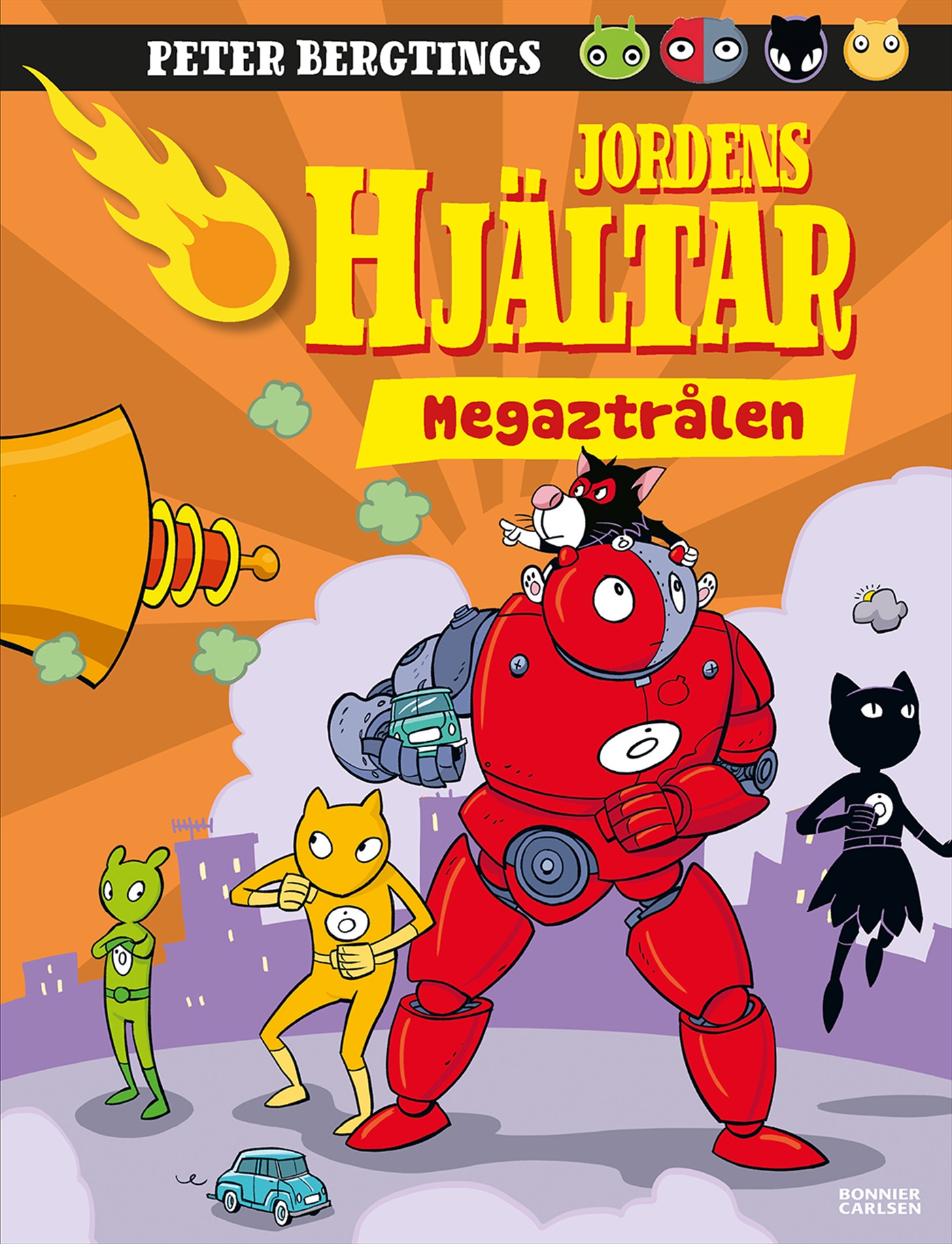 Peter Bergtings alldeles egna bilderboksuniversum blandar ingredienser från klassiska serietidningar med detaljrika akvareller till en medryckande högläsningsstund för stora och små. Perfekt superhjältebok för alla som gillar serier som Pyjamashjältarna, Spindelmannen, Shimmer & Shine eller Lego.