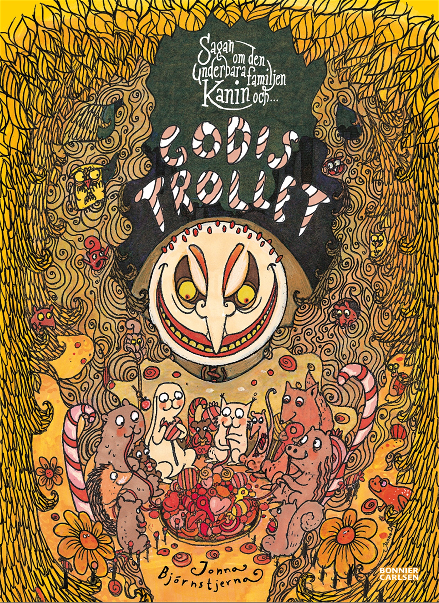 Men är detta verkligen sant? Lillebror Kanins pappa påstår det. Men själv går ju pappa och gräver i gottepåsen mitt i veckan utan att det dyker upp något troll. Det där trollet är säkert ett vuxenpåhitt! När pappa lämnar köket klättrar Lillebror upp till godisskåpet. Han andas in den himmelska doften av polkagris, tvekar ett ögonblick, sedan åker godiset in i munnen ... Då, o fasa, sträcks ett par lååånga armar in i köket och griper tag i Lillebror - Godistrollet! Den första boken, "Sagan om den underbara familjen Kanin och monstret i skogen", röstades fram till årets bästa bok för 0 - 6-åringar i Bokjuryn 2007 (tävlingen där Sveriges barn själva röstar fram sina favoriter)! Vuxna gillade den också: "Såväl språkbehandlingen som bilderna vittnar om en genuin talang." Aftonbladet "[...] en kittlande och skönt skruvad thriller för förskoleåldern." Vi Föräldrar