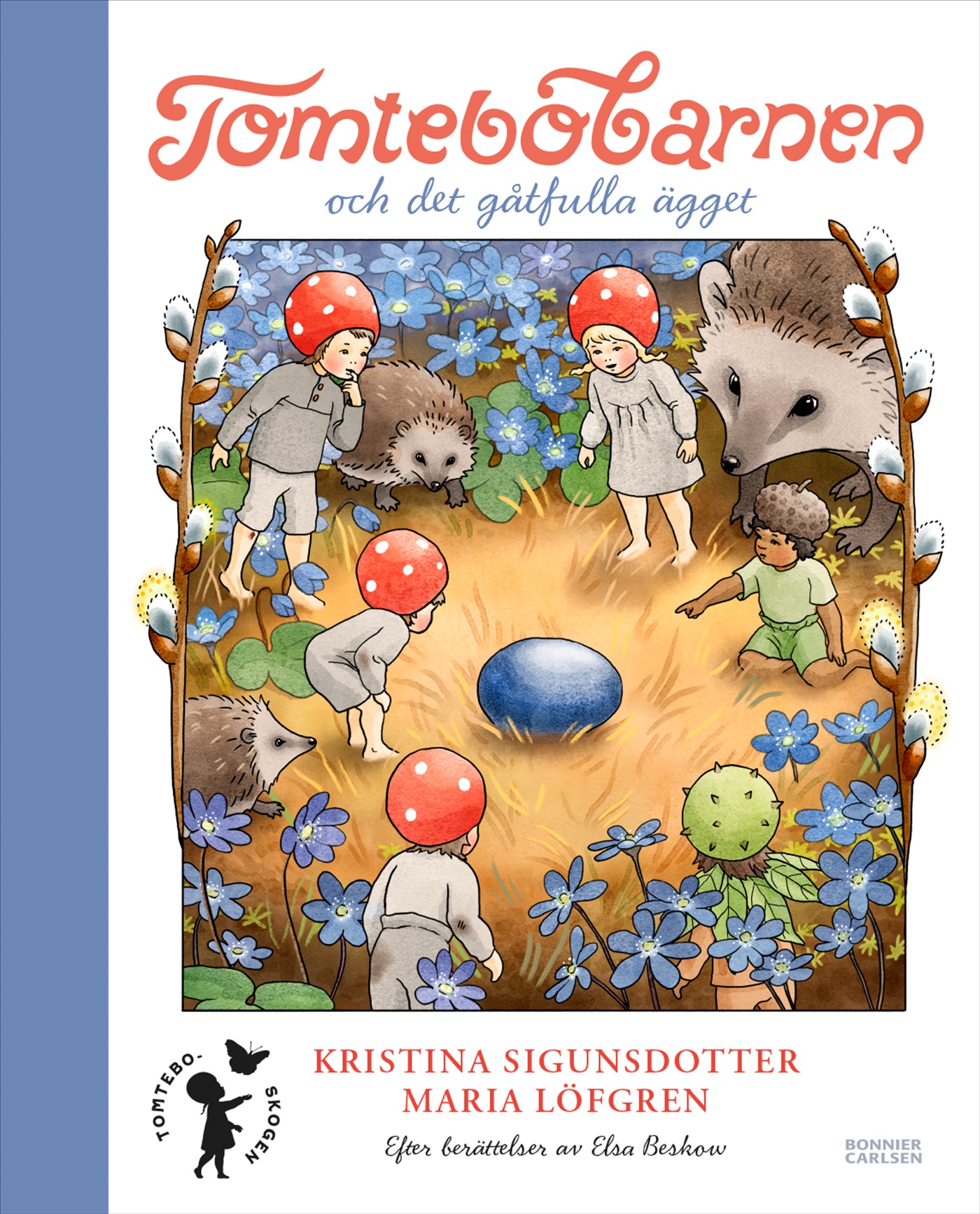 Våren spirar i Tomteboskogen och alla barn vill ut och leka i Blåsippsbacken. Men vad ligger där? Ett övergivet ägg? Vems kan det vara? Och vad gömmer sig inuti ägget?