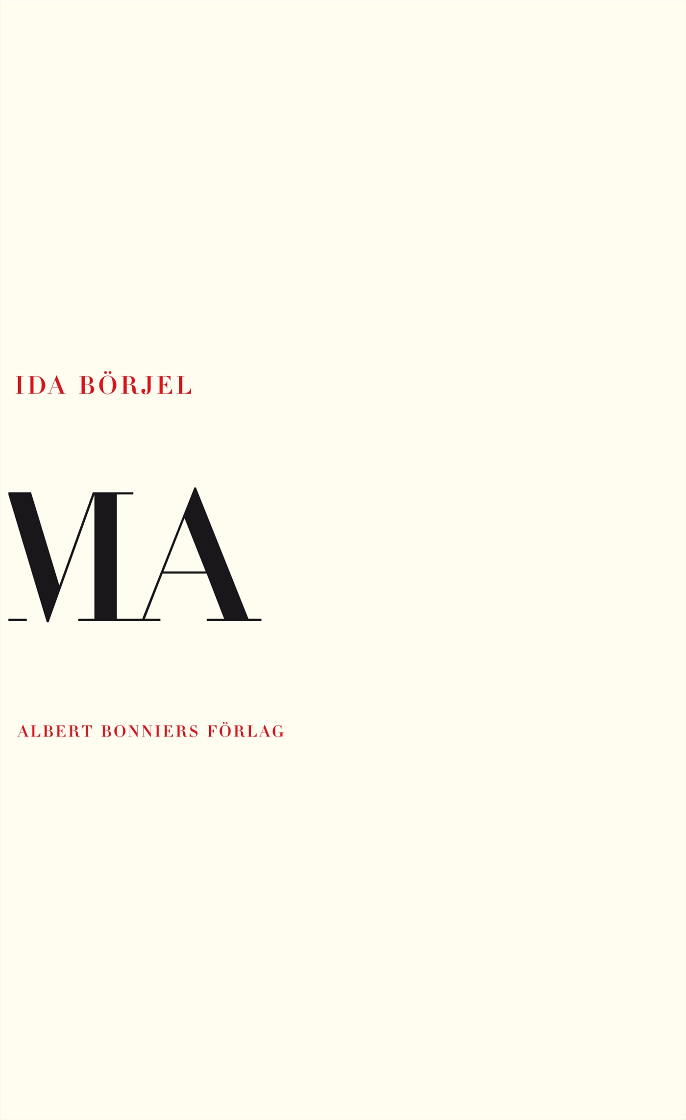 ”Ma” är japanskans tecken för tomhet, glapp, ockuperat utrymme, rumslighet. ”Ma” kan också beteckna: gudaväsen, tid, massa och minne men också – en mor. Ida Börjels nya bok är ett försök att skriva de döda i deras frånvaro – men skrivs de fram levande igen eller omigen döende, döda? Boken vill härbärgera en expanderande värld, flödande, amorf. Det är en samling dikter villkorade av den årslånga tystnad som föregick arbetet, av tigandet, oförmågan och vägran att skriva.