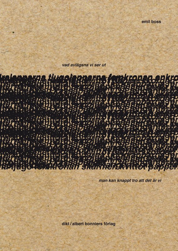 Vad avlägsna vi ser ut man kan knappt tro att det är vi är en lyrisk text om kropp, text och tid. Ett textjag försöker upprätta ett avlägset vi genom att mata fram en dikt, utsaga för utsaga. Tiden mäts och passerar och den levda kroppens gränser är otydliga. Ett monotont påtvingat arbetsspråk blir en förutsättning för texten. Hur förhåller det sig till jagets tänkande och självbild?