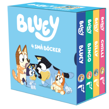 Lär känna Blueys familj med den här fina lilla boxen där Bluey, lillasyster Bingo, mamma Chilli och pappa Billy alla får varsin mysig bok. När du läst klart kan du lägga pussel med böckernas baksidor.